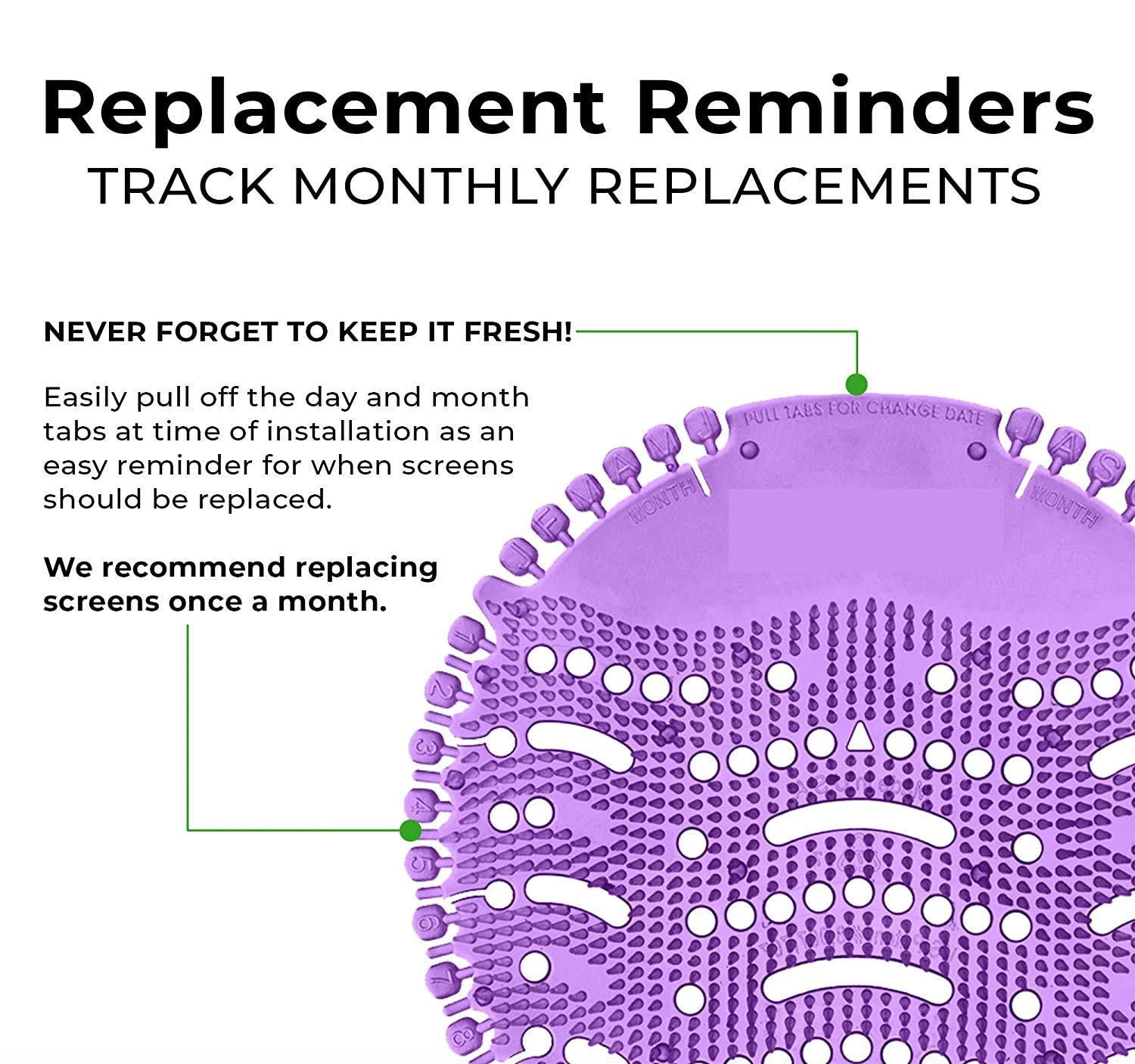 Patented bristle helps eliminate urine splash back. These mats fit over the drain and act as a net. To prevent debris from getting caught in the drainage system.
