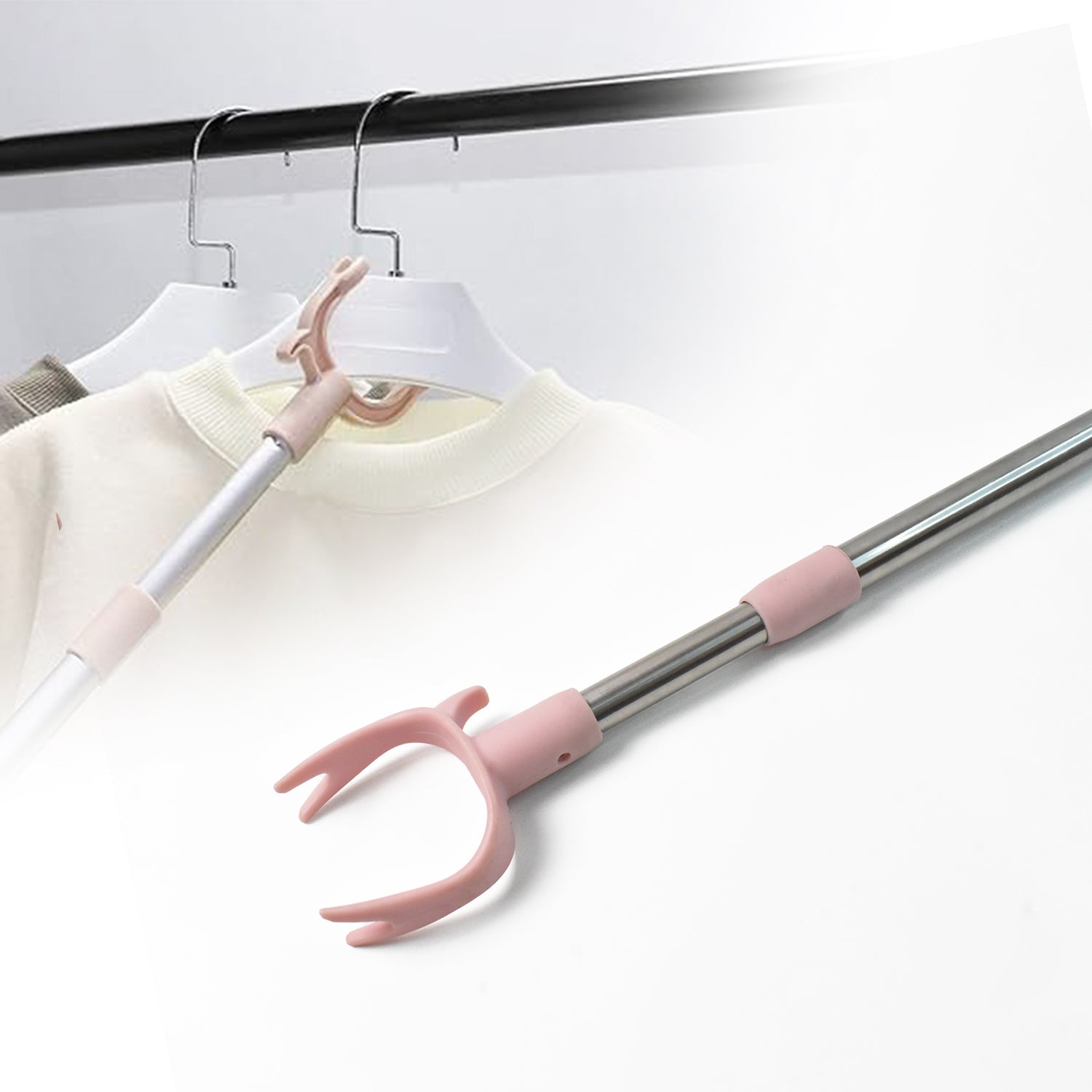 - Reach Stick Cloth Pole with Hook: Extendable closet telescopic pole with long handle that much easier reaching every closet or laundry room for the hard-to-reach areas without step stool or bend down, save your backache